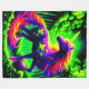 Esta manta de lana tiene un unicornio retratado en ella.