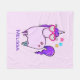 Una manta con un caprichoso dibujo de un unicornio rosa fresco y funky que tiene una forma y una cola púrpura. Esta criatura linda lleva gafas de sol en forma de corazón y está decorada con pequeñas estrellas. Fondo de color de agua rosa.
