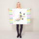 Una cara dulce del unicornio con falso purpurina del oro en su cuerno. Mariposas que bailan alrededor de las flores en su cabeza y una melena rizada larga. Las rayas en colores pastel bonitas de rosado, de azul, de verde, de amarillo y el gris mezclarán adentro su dormitorio de las hijas. Este diseño inspirado arco iris mágico es fácil de modificar para requisitos particulares con su nombre de la hija o de la nieta.