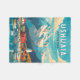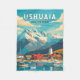 Diseño de viaje de vector retro de Ushuaia. Es una ciudad turística de Argentina. Se encuentra en el archipiélago de Tierra del Fuego, la punta más meridional de América del Sur, apodado el "Fin del Mundo".