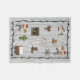 Este divertido diseño presenta un fondo de madera rústico gris y todo tipo de objetos de vaquero por todas partes. Hay un vaquero de pelo rubio, una cárcel, un caballo, un gorra de vaquero, una insignia de sheriffs, botas, montura, cuerda, cactus y un vagón cubierto. Hay un borde con cable de barbilla negra.