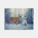 Una escena divertida de un ciervo comiendo la nariz de zanahoria de un muñeco de nieve y un conejo conejo rogando por un pedazo.