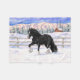 Caballo de gancho negro gitano trotando en la nieve.