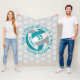 Esta manta de pulpa adorable y de voleibol de niñas presenta un voleibol verde azulado, gris y blanco rodeado por el texto, "La cancha de voleibol es mi lugar feliz" en verde azulado con una fuente divertida e informal, escrita a mano - el fondo es gris claro personalizable con un patrón de "puntos de polka" de bolas de voleibol blanco más pequeñas - su nombre y número de camiseta son personalizable - por katz_d_zynes