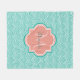 Una moda verde azulada de arte verde deco escala de pescado patrón frazada con una insignia de cuatrefoil rosa claro que puedes personalizar añadiendo fácilmente tu monograma y nombre. Este artículo forma parte de la colección Arcadia Fishcale Blooming Dahlia Monogram Spring. Elija entre 3 tamaños.