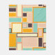 A vibrant abstract pattern with rectangles of varying sizes in teal, orange, peach, and cream tones, outlined in dark brown. Geometric and retro feel.