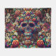 Esta obra de arte cuenta con un cráneo de azúcar de diseño intrincado adornado con flores vibrantes, hojas y motivos ornamentales. Rica en color y detalle, captura la esencia de las celebraciones tradicionales del Día de los Muertos, combinando elementos de la cultura mexicana con un toque moderno y artístico. La paleta brillante y audaz crea una visión llamativa y atractiva, que simboliza la vida, la muerte y la belleza del patrimonio cultural.
