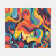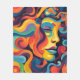 Los muelles y rizos vivos en un arcoiris de colores crean el perfil abstracto de un hombre o una mujer con una expresión pacífica. Los tonos azules, naranjas, amarillos y rojos se mezclan armoniosamente para delinear los rasgos faciales y el cabello fluido.
