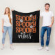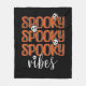 Ilustracion de Halloween con diseño de texto "Spooky, Spooky, Spooky Vibes" y calaveras con colores blanco, naranja y negro