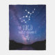 Our Virgo birth sign throw blanket is perfect for anyone inspired by astrology and new age mystic home decor. With a beautiful dark blue starry sky backdrop, the constellation of Virgo sits above the text and zodiac symbol. The horoscope text can be easily personalized and all elements can be resized, recolored or moved around - just tap to customize further.