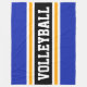 Este diseño deportivo presenta un texto atlético de VOLLEYBALL dentro de una franja negra ancha realzada con rayas blancas y amarillas contra bandas anchas de color azul marino. El texto y los colores de este diseño se pueden personalizar.