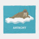 Crea un regalo personalizado para alguien que ama las moras. Esta manta de lana tiene un ilustracion de una morsa flotando sobre un trozo de hielo o un iceberg. El ilustracion de estilo realista de la morsa es marrón, con un fondo azul turquesa. Está listo para ser personalizado con un nombre u otro texto debajo del gráfico con letras blancas.