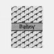 Esta manta de lana personalizado cuenta con una silueta de un perro de Weimaraner con azulejos en el fondo y un lugar para un nombre en el centro.