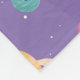 Patrón caprichoso presenta planetas sonrientes felices al estilo Kawaii sobre fondo de galaxia púrpura
