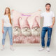 Beautiful image of 3 little Gnomes dressed in pink standing in a garden of pink and white flowers. They have big round noses, curious eyes, long white mustache and long white beards. Personalize with your name.