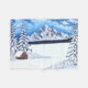 Una manta de lana con una hermosa escena de invierno que incluye montañas nevadas, una cabaña rústica y verduras en fuerte nieve. Obra de arte original de W.B.