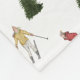 Destei's original hand-illustrated watercolor pattern featuring women skiing among green fir trees. Each skier wears a different color jacket including red, yellow and teal, bringing energy and life to the winter scene. This design captures the joy of outdoor winter activity and evokes a seasonal, festive feel. Ideal for anyone seeking a stylish holiday pattern that reflects a love of movement, nature and the winter season.