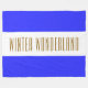 Este divertido diseño estacional presenta una amplia franja blanca horizontal central con texto alto e INVIERNO WONDERLAND que se puede personalizar. Las anchas franjas superior e inferior son un azul real vibrante.