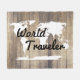 Prepárate para la aventura con esta blanda manta de lana que tiene una silueta de mapa del mundo blanco sobre un fondo de tablas de madera clara y también las palabras "World Traveler" en escritura linda negra. Esta manta es un gran regalo para el aventurero de corazón o incluso para el viajero valiente de tu vida.