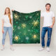 Manta Polar Xmas copos de nieve dorados sobre fondo verde