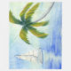 Playa tropical. Yate en el mar Palma en un día soleado. Acuarela. El ilustracion acuarela fue dibujado y escaneado. La imagen será a la vez un buen regalo y una magnífica decoración interior.