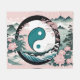 Yin yang blanco y negro y Verde azulado Pink and sage green con un toque verde azulado y floral de paisaje montañoso AI generada por minx267