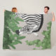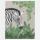 My design features a black and white zebra walking amongst the monstera, ivy and bird of paradise leaves.