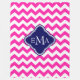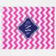 Patrón geométrico monogramado rosa y blanco con acentos azul oscuro chevron zigzag