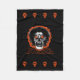 ZOMBIE - Cara zombie ilustrada, rodeada de cráneos pequeños.