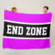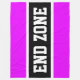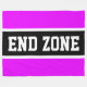 Este diseño deportivo de fútbol presenta texto en negrita END ZONE dentro de una amplia franja de carreras de centro negro resaltada en blanco contra rayas exteriores de color rosa brillante. El texto se puede personalizar.
