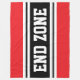 Este diseño deportivo de fútbol presenta el atlético texto en negrita de la ZONA DE END dentro de bandas anchas de carreras blancas y negras contra bordes exteriores brillantes rojos. Los colores y el texto de este diseño se pueden personalizar editando el diseño.