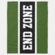 Este diseño deportivo de fútbol presenta texto en negrita END ZONE dentro de una amplia franja de carreras de centro negro resaltada en blanco contra rayas externas. El texto se puede personalizar.