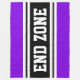 Este diseño deportivo de fútbol presenta el atlético texto en negrita de la ZONA FINAL dentro de bandas anchas de carreras negras y gemelas blancas horizontales contra bordes exteriores violetas. Los colores y el texto de este diseño se pueden personalizar editando el diseño.