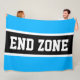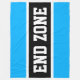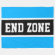 Este diseño deportivo de fútbol presenta texto en negrita END ZONE dentro de una amplia franja de carreras de centro negro resaltada en blanco contra rayas exteriores azul cielo brillante. El texto se puede personalizar.
