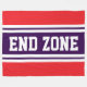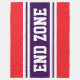 Este diseño deportivo de fútbol presenta texto atlético negrita en la ZONA DE END dentro de bandas anchas de carreras violetas y gemelas blancas horizontales contra bordes exteriores brillantes rojos. Los colores y el texto de este diseño se pueden personalizar editando el diseño.