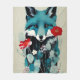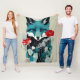 Un magnífico zorro azul con flores rojas y blancas, IA, generó pintura