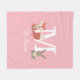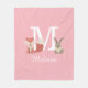 Manta suave rosa para bebé con un zorro bebé y un conejo en el bosque sentados a ambos lados del monograma y nombre. Diseñado por Thisisnotme©
