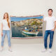 Vista panorámica del pintoresco puerto con tradicionales barcos de pesca de madera y el pueblo de Plomari a la luz de la noche, en la isla griega de Lesbos, el mar Egeo, Grecia, Europa. Foto tomada por Katho Menden, esta manta es un regalo para alguien que ama Grecia y las islas griegas.