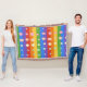 Colorful rainbow stripes with soft polka dots in a seamless repeating pattern. Bright, playful, and perfect for fun everyday products.
