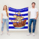 Esta manta náutica rayada del paño grueso y suave ofrece un barco pirata en vela llena con un cráneo y huesos cruzados en la vela de centro. Disponible en las mantas del paño grueso y suave en tres tamaños, o haga clic el vínculo a la derecha de ver este diseño en los otros productos y ropa.