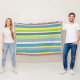 Las rayas azules, verdes, blancas y amarillas arrojan una manta.