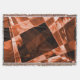 rectángulos y cuadrados irregulares, inclinados o estirados, algunos alineados, pero inclinados. En tonos rojos y corales o marrones con puntos fuertes y algunas líneas que separan "objetos".