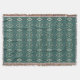 Midcentury retro vibe, diamonds pattern with abstract turquoise lines and small orange details, on a dark teal background.