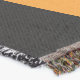 Este diseño presenta formas suaves y fluidas en naranja, blanco y negro. Parece pétalos o olas, lo que le da un aire audaz y moderno.