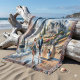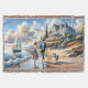 This enchanting coastal scene captures a dreamy sunset stroll along a golden shoreline, where soft waves kiss the sand and warm light dances across the water. A stylish couple walks hand in hand beside a fluffy companion, their silhouettes glowing against a pastel sky brushed with blush, apricot, and powder blue clouds. In the distance, a graceful sailboat drifts peacefully, while a grand seaside cottage rests atop a flower-lined bluff, surrounded by lush greenery and blooming garden paths. The entire composition feels like a modern cottagecore daydream infused with cozy coastal charm and a hint of boho romance. Gentle reflections shimmer in the wet sand, creating a luminous, painterly aesthetic that feels both whimsical and serene. This artwork blends soft realism with a storybook atmosphere, evoking feelings of love, tranquility, and slow living by the sea. Perfect for anyone drawn to romantic beach vibes, elegant seaside homes, and sunset wanderlust. AI generated artwork.