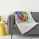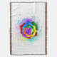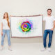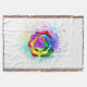 Rosa grande y floreciente con pétalos de arco iris sobre fondo blanco, pintado con salpicaduras de pintura colorida y brillante. 3.ª