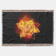 Rosa en llamas del fuego y la llama sobre fondo negro.