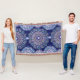 Dibujo de una vidriera de una antigua iglesia europea: una ventana rosa con toques de colores muy variados, como el azul, sobre un fondo azul marino. Entrada de diamantes de imitación azules. Este motivo también está disponible en rojo cardinal en mis colecciones de "rosácea roja cardinal".