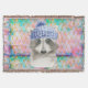 Rara vez Roxy se sienta todavía lo suficiente como para un retrato. La mayoría de las noches se le puede encontrar saqueando los basureros en el distrito Ballard de Seattle. Raccoon de acuarela digital en retrato de abeja de punto azul en fondo multicolor