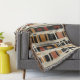 Earthy geometric pattern blanket inspired by tribal mudcloth textiles, featuring hand-painted rectangles, diamonds, and triangles in charcoal black and terracotta on a textured beige background. A warm boho design ideal for rustic décor lovers, artisan style fans, and anyone drawn to earthy geometric aesthetics.